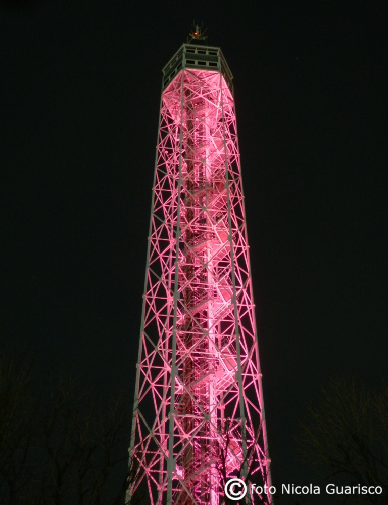 Parco Sempione: la metallica Torre Branca in "multicolor", davanti alla luna piena di gennaio. |