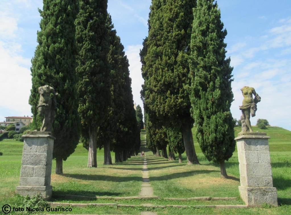 Le ville di Inverigo sono collegate dallo splendido Viale dei cipressi, lungo quasi 2 km e famoso anche più delle ville. Fu ideato dai Crivelli nel 1664 come camminamento verso il santuario di S.Maria alla Noce. Pochi anni dopo venne allungato in direzione opposta, verso Villa La Rotonda e la statua di Ercole, formando la scalinata del Gigante (foto a destra). Purtroppo, nel corso del tempo, il viale venne interrotto dalla strada e dalla ferrovia. Sottoposto a vincolo ambientale nel 1960, oggi conserva comunque la sua serena maestosità. |
