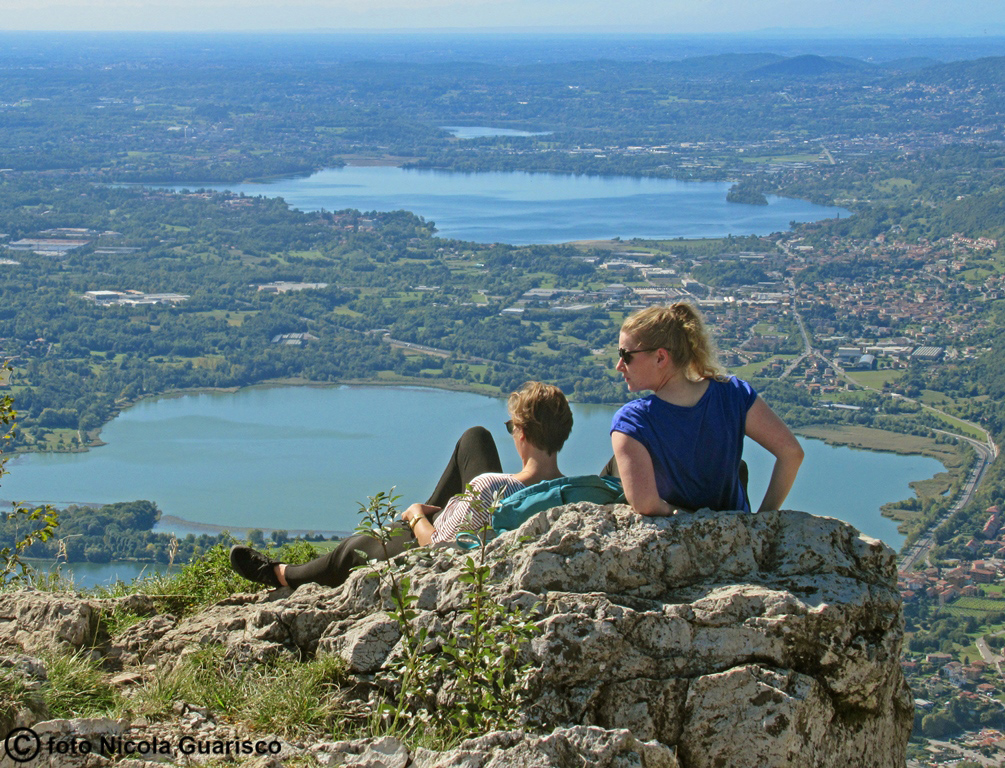 Lecco: view over the rocks of mount Resegone and the lakelets of Brianza from the tip of Mount Barro. |